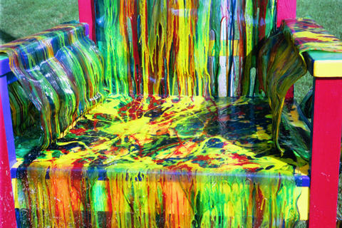 "Whimsy" is made up of resin painted acrylite hand-formed and draped with enamel paint on the structure.